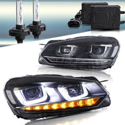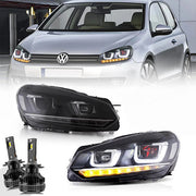 VLAND Dual Beam LED Projector Headlights for Golf 6 / MK6 2010-2014 With Sequential & Demon Eye