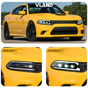 Vland Full LED 3 Projectors Dual Beam Lens Headlights For Dodge Charger 2015-2021 7th Gen Facelift (Seventh generation, LD) Amber / White DRL