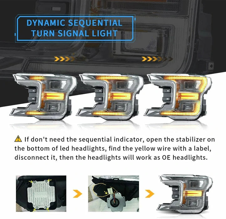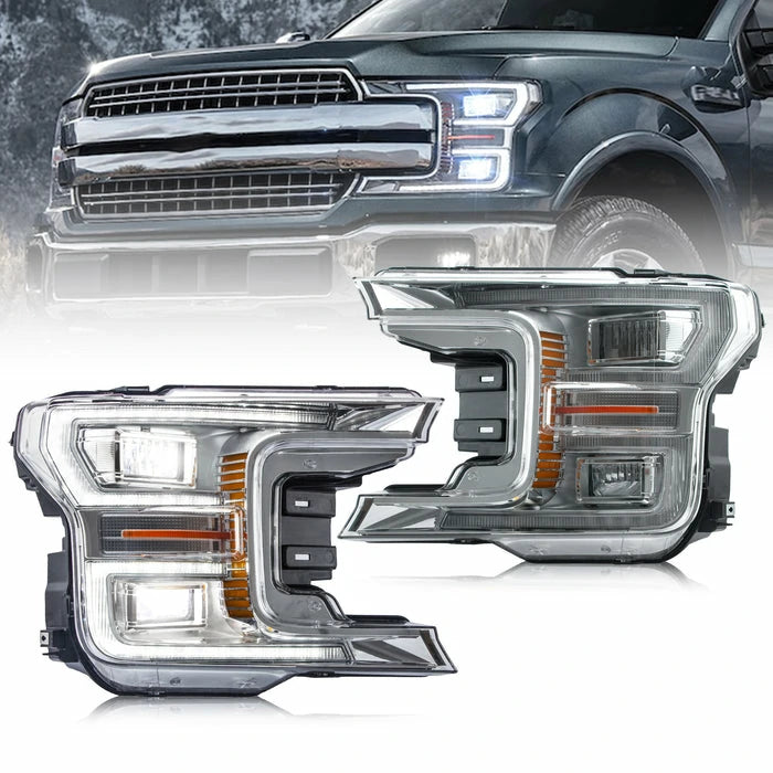 Phares Full LED VLAND pour Ford F150 2018-2020 avec clignotants séquentiels (style boîtier noir et chrome)