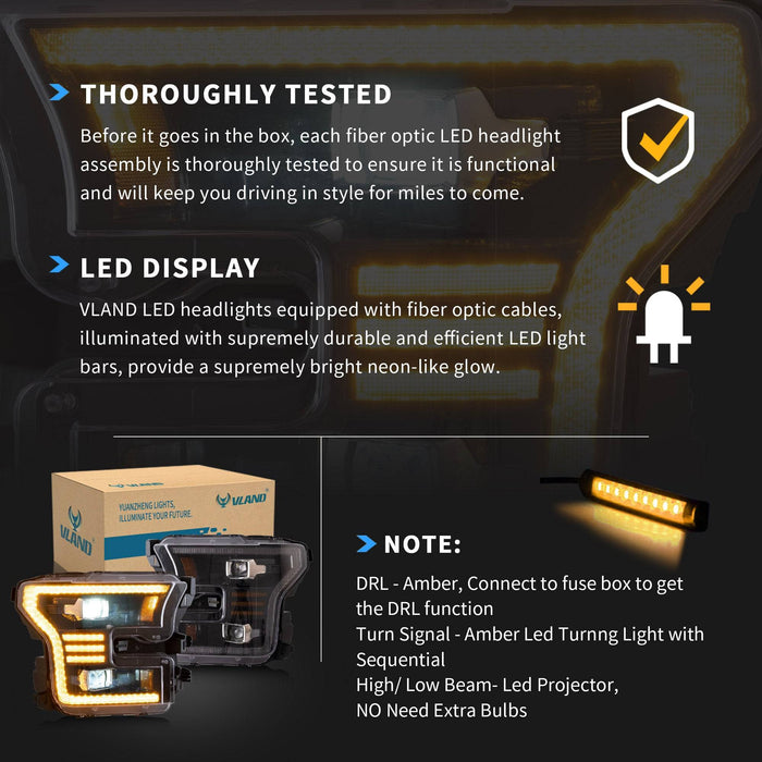 VLAND LED Projector Headlights For Ford F-150 / Ford Lobo 2015-2017