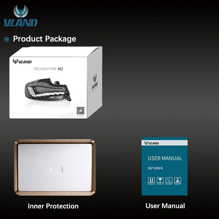 VLAND Full LED Tail Lights for BMW 2 Series M2 2014-2021 1st Gen (F87/F22/F23) w/ Startup Animation Selectable [GTS Style]