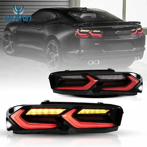 VLAND Full LED Tail Lights Smoked for Chevrolet Chevy Camaro 2019-2024 w/ sequential Indicator