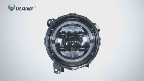 Pełne reflektory LED VLAND do Jeepa Wranglera 2018-2023 z animacją startową (9 cali)